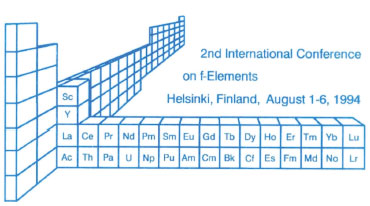 ![]() Figura 8. Capa do livreto de programa e resumos da 2nd International Conference on f-Elements, realizada em Helsinki, Finlândia, de 1 a 6 de agosto de 1994
