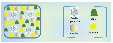 O principal fornecedor mundial de TR é a China, onde as TR estão amplamente disponíveis e são produzidas em grande escala (até 95% da demanda mundial). No entanto, a crescente demanda doméstica (mais de 70% de sua própria produção) depois que a China dominou as tecnologias para fabricar os produtos finais (turbinas eólicas, fósforos, baterias, ímãs etc.) juntamente com as várias restrições ambientais impostas, fizeram com que esse país aumentasse o preço médio das TR mais de dez vezes nos últimos anos.36,130,131 As restrições de fornecimento da China estão de encontro com o desenvolvimento de muitos novos projetos de mineração e recuperação, como o no caso o projeto RECOLA, que foi desenvolvido pela União Europeia em 2016 em colaboração com pesquisadores dos países: Argentina, Brasil, Peru, Itália e Polônia.132 O uso eficiente dos recursos naturais é mandatório em uma economia autossustentável. Isso só é possível pela reutilização e reciclagem de materiais provenientes de bens de consumo exauridos.133-135 Uma das formas mais promissoras de recuperar grandes quantidades de TR é usar resíduos de pó fosfórico de lâmpadas como fonte de TR; essas lâmpadas contêm alta concentração de TR (até 40% dependendo do tipo de lâmpada).136,137 No final do ciclo de vida das lâmpadas fluorescentes, o mercúrio é removido e os resíduos são descartados em conjunto com os fósforos de TR. Por esse motivo, essas lâmpadas são consideradas fontes potenciais de TR, que podem ser obtidas através de processos de reciclagem. Nos últimos anos houve um aumento expressivo no número de trabalhos baseados em alternativas para recuperação de TR provenientes de resíduos de lâmpadas. Takahashi et al. recuperaram as TR em resíduos de pó fosfórico nas lâmpadas, utilizando processos baseados em gravidade, como separação pneumática junto com a lixiviação em ácido sulfúrico.138 Hiragima et al. trabalharam em um método baseado em centrifugação em meio denso, usando di-iodometano (CH2I2).139,140 No entanto, a baixa eficiência do primeiro método e os altos custos e efeitos ambientais negativos do meio denso orgânico utilizado no segundo processo levaram os pesquisadores a buscar uma tecnologia mais adequada. Outra aplicação de extrema importância mundial são os catalisadores de craqueamento de petróleo (FCC), amplamente utilizados na indústria de petróleo e que geram quantidades significativas de resíduos com TR, como lantânio cério. O uso de zeólitas contendo TR em catalisadores de craqueamento foi descrito por Plank e Rosinski, ambos da Socony Mobil Oil, no início dos anos 60. Eles descobriram que as zeólitas contendo TR eram cerca de 100 vezes mais ativas do que os tradicionais catalisadores amorfos de sílica-alumina utilizados na época. Essa invenção teve um efeito mundialmente expressivo no processamento de petróleo. Plank e Rosinski foram introduzidos no Inventor Hall of Fame em 1979.141 Os FCCs são materiais usados no processamento de hidrocarbonetos, auxiliam na quebra (craqueamento) de grandes moléculas a partir de matérias-primas, como o gasóleo pesado (óleo mineral destilado do petróleo que fica entre o querosene e o óleo lubrificante). Embora sua constituição possa variar, eles são constituídos basicamente por aluminossilicatos microporosos cristalinos, também conhecidos como zeólitas, adicionadas a fim de aumentar o potencial do catalisador. Além disso, o zeólitas tem uma estrutura interna porosa com sítios ácidos que podem converter moléculas maiores em moléculas menores. Caulim, alumina e sílica são adicionados como complemento, Figura 14. Atualmente, os materiais catalíticos constituídos por terras raras desempenham um papel importante na indústria química do petróleo.142 O catalisador de craqueamento, FCC, é indispensável para o refino de petróleo. Com o desenvolvimento do refino de petróleo, uma grande quantidade de catalisadores FCC vem sendo descartado em aterros sanitários; no entanto, a poluição ambiental do ar, do solo e do oceano contaminada por esses catalisadores de resíduos tornou-se um sério problema global.143