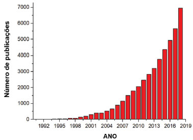 ![]() Figura 15. Número de publicações científicas com o termo "metal-organic frameworks or MOFs" presentes em "tópicos" até 2018. Construído a partir da ISI Web of Science