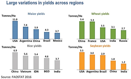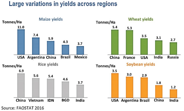 ![]() Figure 3. Differences on crop yields across regions and main producers. Reproduced from Reference 24