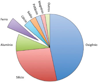 ![]() Figura 1. Distribuição dos elementos químicos na crosta terrestre.1 Em destaque o seguimento relativo à proporção de Ferro
