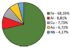 ![]() Figura 9. Distribuição dos principais metais na pauta de exportações brasileiras de substâncias metálicas. Fonte: Camara de Comércio do Exterior9