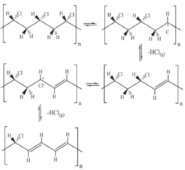 ![]() Figura 7. Mecanismo de desidrocloração do PVC