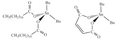 Os primeiros compostos organoestânicos adicionados ao PVC foram o laurato de dibutilestanho e em seguida o maleato de dibutilestanho introduzidos pela empresa Union Carbide na década de 1930, Figura 8.
