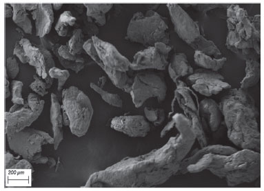![]() Figure 3. Electromicrographs: A) surface of chitosan-caffeic acid nanogel (approximation 500x); B) cross section of chitosan-caffeic acid nanogel (approximation 500x)