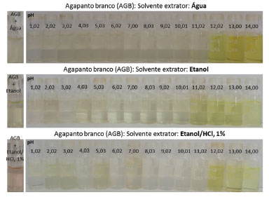 ![]() Figura 8. Tabela colorimétrica dos extratos de AGB
