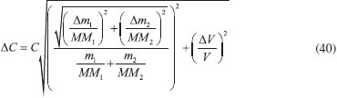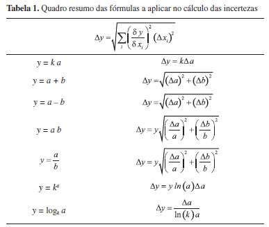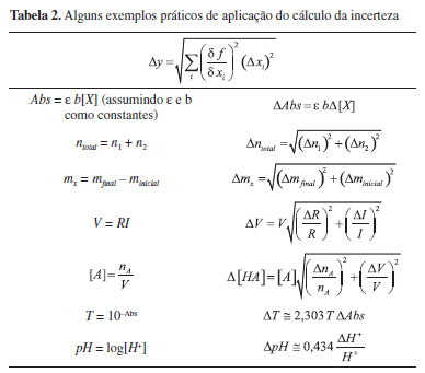 ALGUMAS NOTAS SOBRE A APLICAÇÃO DA PROPAGAÇÃO DE INCERTEZA NA QUÍMICA Podemos começar por ver, na Tabela 2, algumas aplicações diretas das fórmulas da Tabela 1 em alguns exemplos práticos na vida de um químico.