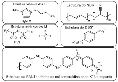 | Líquidos iônicos como plastificantes em blendas de borracha nitrílica/polianilina Ionic liquids as plasticizers in nitrile rubber/polyaniline blends |