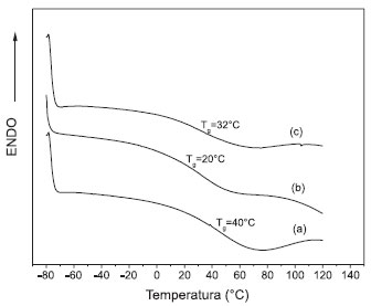 ![]() Figura 3. Curvas DSC para (a) PANI-DBSA; (b) PANI-DBSA-C4MIMTf2N(20) e (c) PANI-DBSA-C4MIMBF4 (20)