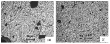 ![]() Figura 5. Microscopias ópticas de NBR contendo 1%(m/m) (a) PANI-DBSA-C4MIMBF4 (20) e (b) PANI-DBSA-C4MIMTf2N(20). 100x de ampliaçao