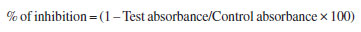 In the case of quantitative determination of total polyphenols, the linear regression analysis was y = 0.0925x - 0.0244 (gallic acid), r2 = 0.992. The polyphenols content of the stamen was the richest (0.7359 ± 0.010 mg g-1 dry weight), followed by that of the petal (0.429 ± 0.012 mg g-1 dry weight) and gynoecium (0.2890 ± 0.022 mg g-1 dry weight). The reported results are the means of three determinations. Toxicological studies revealed that the ethanolic extracts of the organs under investigation were safe in a dose up to 5.7 g kg-1 body weight and can therefore be considered safe.19 In vitro antioxidant effect Results of the in vitro antioxidant activity (Table 3) based on DPPH scavenging radical activity showed significant results for all the plant samples compared with that of the silymarin reference; EES was the most significant, with 67.26% potency, followed by EEG (52.71%) and EEP (47.14%).
