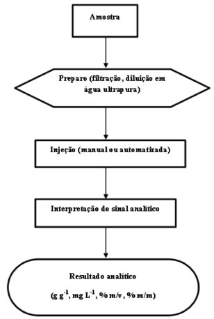 ![]() Figura 2. Fluxograma simplificado de aplicação da HPLC com detector de índice de refração para determinação de açúcares