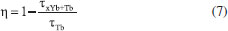 The results indicate that the origin of the Tb3+:5D4→7F5 (544 nm) UC luminescence is due to a CET process from two Yb3+ ions to one Tb3+ ion. Thus, in accordance with Salley et al.,27 the transients can be fitted using the following equation (6): ![]() where τ1 and τ2 represent the decay and rise times of the transient, respectively. τ1 provides information about the radiative and non-radiative process in the acceptor ion and the inverse of τ2 (WET = 1/τ2) provides the energy transfer probability from the donor to the acceptor ion. Note that we have successfully employed equation (6) to estimate the energy transfer probability between Tb3+ and Yb3+ ions in our previous work.11 Therefore, τ1 decreases from 1.64 to 0.79 ms and WET increases from 6.7 × 103 s-1 to 45.5 × 103 s-1 with Yb3+ doping in the range of 0.1-7.0 %mol (see Table 4). In the work reported by Terra et al.,11 the mechanisms involved in the UC process in Yb3++Tb3+ co-codoped aluminosilicate glasses were analyzed. In that work, the values reported for the UC luminescence rise times are in the range from 20 to 65 microseconds for the temperature range from 123 to 473 K. The inverse of those rise times results in values of probability of energy transfer in the range from 50 × 103 to 15.4 × 103 s-1, which are comparable to the values calculated in the present work. On the other hand, in the work reported by Salley et al.,27 studying the UC process in a Yb3++ Tb3+ co-codoped SrCl2 crystal, they obtained an energy transfer probability value of the order of 6.9 × 103 s-1, measured at 100 K. It can be seen that the WET values of this work and those of Terra are greater than that reported by Salley and this is understandable, since it is known that rare earth ions agglomerates are usually formed in glasses and not in crystals, which facilitates the energy transfer from one ion to another.