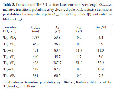 The radiative transition rates considering the electric and magnetic dipole contributions, branching ratios and radiative lifetimes of the 5D4 and 5D3 levels are given in Tables 2 and 3, respectively.