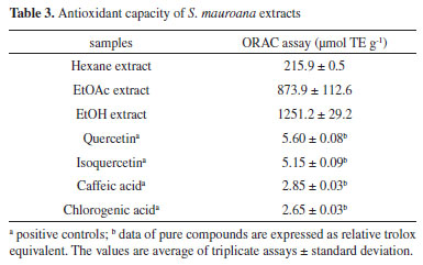 SUPPLEMENTARY MATERIAL Data and spectra of NMR of isolated compounds from aerial parts of S. mauroana are available in http://quimicanova.sbq.org.br, as PDF file.