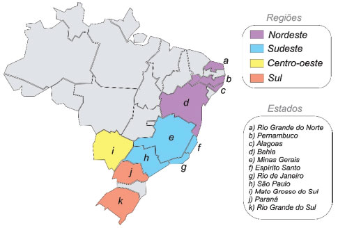 ![]() Figura 1. Estados que possuem polos regionais do PROFQUI