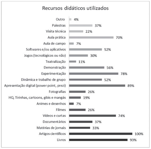 ![]() Figura 8. Recursos didáticos comumente utilizados pelos PPs