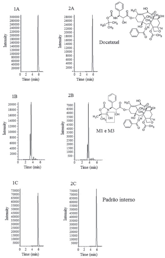 | Determinação de docetaxel e metabólitos em plasma por UPLC-MS/MS: desenvolvimento de metodologia analítica e aplicação clínica Determination of docetaxel and metabolites in plasma by UPLC-MS/MS: method development and clinical application |