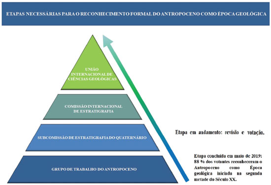 ![]() Figura 1. Percurso a ser percorrido pela proposta do Antropoceno para ser reconhecido oficialmente como Época geológica