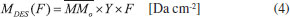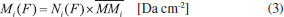 Column mass and chemical equilibrium The column mass (Mi) of a given species i in the ice as a function of fluence is defined by the expression: ![]() where Ni(F) is the column density in units of molecules cm-2 and ![]() where To determine the sputtering yield it was assumed that, although we could not observe all the daughter species formed from the irradiation process, there is a tendency that its column mass is desorbed with a similar proportion to the column mass of the species we can observe in the infrared spectra. Thus the estimated Ydes = 0.18 molecule photon-1 was adopted indirectly indicating how MUNKNOWN was produced, which was later considered for the abundance of the system along the process and after reaching the chemical equilibrium. The column mass of unknown species (MUNKNOWN) can be estimated by the following equation: ![]() where Si=parent Mi(F = 0) indicates the sum of the column masses of the parent species at the beginning of the experiment, ΣMj (F) indicates the sum of the column masses of the observed species (father and daughter) at a given fluence F and MDES(F) is the estimated column mass of the desorbed species (from equation 4). Thus, by knowing MUNKNOWN(F), we can estimate the column density of the unknown species by employing Equation (3) once more. The column mass as a function of fluence in the current experiment was presented in Figure 7. We observe that at the beginning of the experiment, the summed column mass of the observed species shows a decrease, suggesting the appearance of a reasonable number of reactant species in the ice, which is also incorporated in the inventory of column mass of unknown species. In addition, the figure shows that the summed column mass of observed species (black curve), as well as the estimated column mass of the unknown species (red curve), which were obtained by employing Equation (5), reach a tilted plateau at longer fluences. This fact reinforces the appearance of a steadystate regime in the ices after longer fluences. The small inclination of this plateau in the column masses discussed is due to the constant desorption rate which reduces the mass of ice with the fluence.