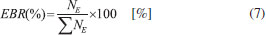 The evolution of molecular abundances as a function of radiation fluence tends to reach a plateau, indicating the appearing of chemical equilibrium in the sample as seen in Figure 8. In the current experiment, this occurs at fluences of about 4.5 x 1018 photons cm-2. The lines are the best fit employing a slightly modified version of Eq. 1 up to the fluences 5 x 1018 photons cm-2 to show the horizontal plateau at larger fluences. The Equilibrium Branching Ratio (in percentage) is defined as a relative abundance of a given species after the system reaches chemical equilibrium according to the expression: ![]() where NE is the column density of a given species (parent or daughter or unknown) after the system reaches the chemical equilibrium (i.e. at the chemical equilibrium fluence or further). It is important to note that the accuracy of the EBR values depends on the determination or the estimation (current methodology) of the amount of material that desorbed from the sample during processing (sputtering) and also the molecule in the ices that could not be measured or identified in the infrared spectra (called unknown molecules). The calculated EBR value in this work during methanol irradiation at 12 K by broadband soft X-rays is listed in Table 6 (also indicated in Figure 8).