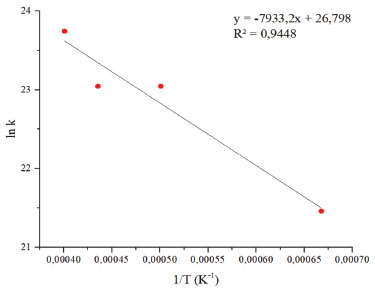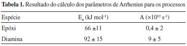 ![]() Figura 7. Curvas de Arrhenius para consumo das moléculas de epóxi