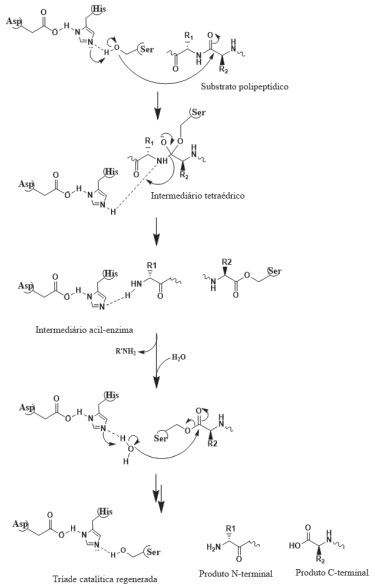![]() Figura 2. Mecanismo de clivagem das serinas proteases93