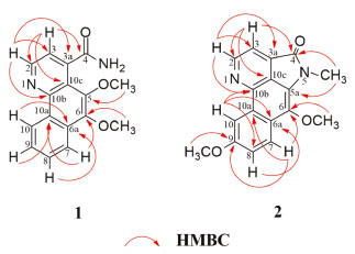 ![]() Figura 2. Correlações HMBC de 1 e 2