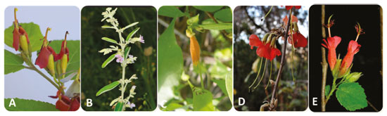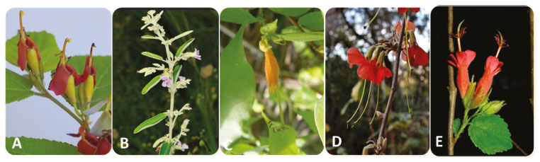 ![]() Figure 1. Helicteres plants. A) H. isora, B) H. angustifolia, C) H. sacarolha, D) H. brevispera, E) H. grazumifolia15