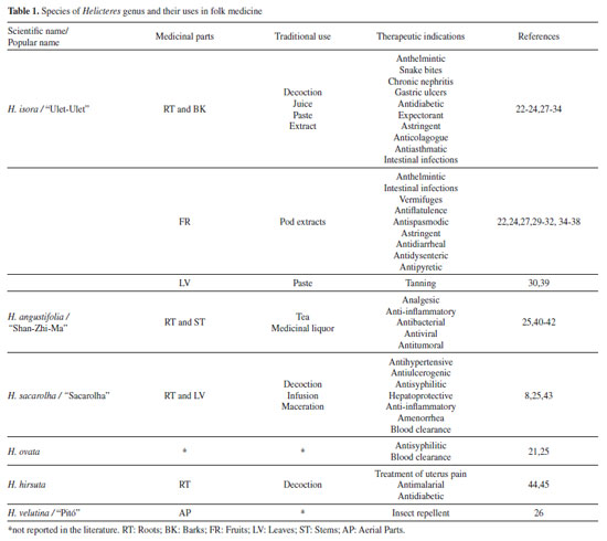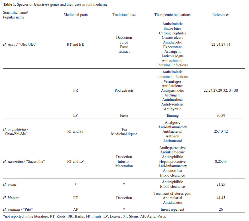 | Helicteres L. species (Malvaceae sensu lato) as source of new drugs: a review |