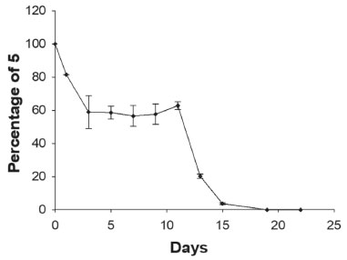 ![]() Figure 5. Percentage of tetraoxane 5 in contact with sand, at room temperature, during 22 days