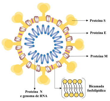 ![]() Figura 1. Estrutura viral simplificada do SARS-CoV-2