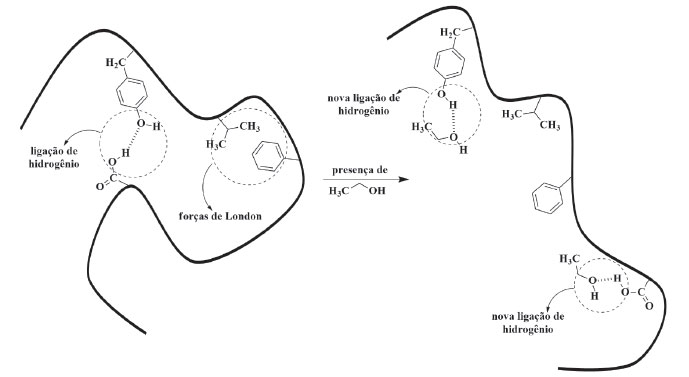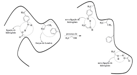 ![]() Figura 2. Representação de interações intermoleculares de uma proteína antes e depois da ação do etanol