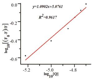 ![]() Figure 4.Stern-Volmer equation and linear regression diagram of static quenching