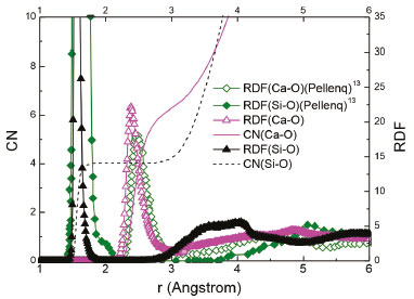 ![]() Figure 3. The Radial distribution function (RDF) and coordinate number (CN) in the C-S-H of x =1.0