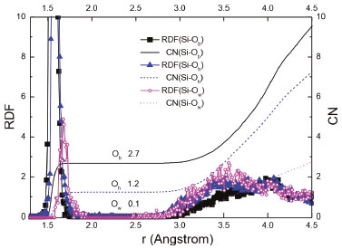 ![]() Figure 4. The RDF and CN between Si and three types of O atoms in the C-S-H of x =1.0