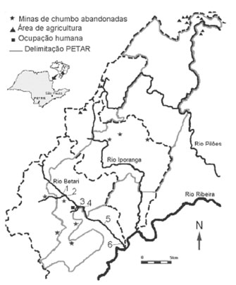 ![]() Figura 5. Mapa de localização da área de estudo e dos pontos de amostragem13 utilizando na UA-5