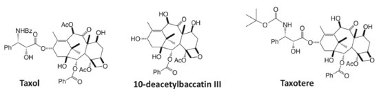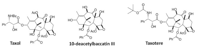 ![]() Figure 2. Structures of the natural products taxol and 10-deacetylbaccatin III and of the non-natural compound taxotere