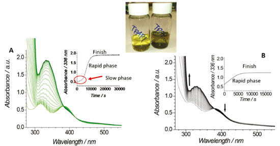 Our study revealed much about the way this reaction works on the molecular level. However, the most surprising finding was that the reaction proceeds 'normally', without the slow phase (Figure 4B) if impure, commercially available TPAP (contaminated with ~3% RuO2) is used. Indeed, most organic synthesis had been carried out with commercially available TPAP, so the (undesirable) slow phase had remained concealed over the 30-year use of the Ley-Griffith oxidation. An ironic discovery that goes against conventional wisdom that your reagents should be as pure as possible. If pure catalyst is used (Fig. 4, top - TPAP1, light yellow solution) then the abnormal behaviour in Figure 4A was seen. Commercially available TPAP catalyst (Fig. 4 top - TPAP2, dark brown solution) is only 97% pure and the 3% impurity of insoluble RuO2 acts as a solid support on which the reaction proceeds more quickly. This was basic research aimed at gaining a deeper insight into a popular reaction used by organic chemists worldwide. There was no intention to find a better catalyst than TPAP, it was merely the pursuit of knowledge utilising the collective skills of the collaborators from different areas (multi-disciplinary research). However, these outcomes will have implications for the way that this catalyst is used and stored into the future.