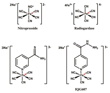 ![]() Figure 5. Some examples of cyanoferrate compounds including bound to thionicotinamide and isoniazid (IQG607)