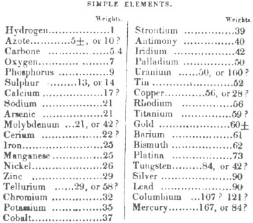 Segue uma lista de pesos atômicos de seu trabalho de 1827 (Figura 1).