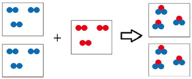 ![]() Figura 4. Representação da formação da água tomando como pressuposto de que todos os gases possuem o mesmo número de partículas em um mesmo volume55