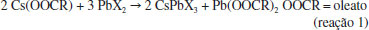 REFERÊNCIAS 1. Capek, I.; Nanocomposite Structures and Dispersions, 2a ed., Elsevier: Amsterdam, 2019, cap. 1. 2. Feyman, R. P.; Eng. Sci. 1960, 23, 22. 3. Park, J.; Joo, J.; Soon, G. K.; Jang, Y.; Hyeon, T.; Angew. Chemie, Int. Ed. 2007, 46, 4630. 4. Rogach, A. L.; Semiconductor Nanocrystal Quantum Dots, Springer-Verlag: Wien, 2008. 5. Silva, F. O.; De Souza Viol, L. C.; Ferreira, D. L.; Alves, J. L. A.; Schiavon, M. A.; Quim. Nova 2010, 33, 1933. 6. Micic, O. I.; Nozik, A. J.; Handb. Nanostruct. Mater. Nanotechnol. 2000, 3, 183. 7. Reiss, P.; Protière, M.; Li, L.; Small 2009, 5, 154. 8. Wagner, A. M.; Knipe, J. M.; Orive, G.; Peppas, N. A.; Acta Biomater. 2019, 94, 44. 9. Ekimov, A. I.; Efros, A. L.; Onushchenko, A. A.; Solid State Commun. 1985, 56, 921. 10. Efros, A. L.; Efros, A. L.; Soviet Physics Semiconductors U.S.S.R. 1982, 16, 772. 11. Brus, L. E.; J. Chem. Phys. 1984, 80, 4403. 12. Martins, M. A.; Trindade, T.; Quim. Nova 2012, 35, 1434. 13. Vale, B. R. C.; Vieira, K. O.; Sousa, J. C. L.; Ferrari, J. L.; Schiavon, M. A.; Quim. Nova 2014, 38, 22. 14. Beatriz, A.; Vitoreti, F.; Bernardes, L.; Raphael, E.; Otavio, A.; Patrocinio, T.; Flávia, A.; Quim. Nova 2017, 40, 436. 15. Girma, W. M.; Fahmi, M. Z.; Permadi, A.; Abate, M. A.; Chang, J. Y.; J. Mater. Chem. B 2017, 5, 6193. 16. Schmidt, L. C.; Pertegás, A.; González-Carrero, S.; Malinkiewicz, O.; Agouram, S.; Mínguez Espallargas, G.; Bolink, H. J.; Galian, R. E.; Pérez-Prieto, J.; J. Am. Chem. Soc. 2014, 136, 850. 17. Gonzalez-Carrero, S.; Galian, R. E.; Pérez-Prieto, J.; J. Mater. Chem. A 2015, 3, 9187. 18. Zhang, F.; Zhong, H.; Chen, C.; Wu, X. G.; Hu, X.; Huang, H.; Han, J.; Zou, B.; Dong, Y.; ACS Nano 2015, 9, 4533. 19. Mitzi, D. B.; Functional Hybrid Materials Wiley-VCH: Weinheim, 2003. 20. Lee, M. M.; Teuscher, J.; Miyasaka, T.; Murakami, T. N.; Snaith, H. J.; Science 2012, 338, 643. 21. Kim, H. S.; Lee, C. R.; Im, J. H.; Lee, K. B.; Moehl, T.; Marchioro, A.; Moon, S. J.; Humphry-Baker, R.; Yum, J. H.; Moser, J. E.; Grätzel, M.; Park, N. G.; Sci. Rep. 2012, 2, 1. 22. Ubani, C. A.; Ibrahim, M. A.; Teridi, M. A. M.; Renewable Sustainable Energy Rev. 2017, 72, 907. 23. Khan, U.; Zhinong, Y.; Khan, A. A.; Zulfiqar, A.; Khan, Q. U.; Sol. Energy 2019, 189, 421. 24. Protesescu, L.; Yakunin, S.; Bodnarchuk, M. I.; Krieg, F.; Caputo, R.; Hendon, C. H.; Yang, R. X.; Walsh, A.; Kovalenko, M. V.; Nano Lett. 2015, 15, 3692. 25. L Wells, V. H.; Z. Anorg. Allg. Chem. 1893, 3, 195. 26. Moller, C. K.; Nature 1958, 182, 1436. 27. Mizusaki, J.; Arai, K.; Fueki, K.; Solid State Ionics 1983, 11, 203. 28. Fontes, A.; de Lira, R. B.; Lopes Seabra, M. A. B.; da Silva, T. G.; de Castro Neto, A. G.; Saegesser, B. In Biomedical Engineering - Technical Applications in Medicine; Hudak, R., org.; InTech: Rijeka, 2012, v. 1, pp. 269-290. 29. Akkerman, Q. A.; D'Innocenzo, V.; Accornero, S.; Scarpellini, A.; Petrozza, A.; Prato, M.; Manna, L.; J. Am. Chem. Soc. 2015, 137, 10276. 30. Nedelcu, G.; Protesescu, L.; Yakunin, S.; Bodnarchuk, M. I.; Grotevent, M. J.; Kovalenko, M. V.; Nano Lett. 2015, 15, 5635. 31. Seth, S.; Mondal, N.; Patra, S.; Samanta, A.; J. Phys. Chem. Lett. 2016, 7, 266. 32. Li, X.; Cao, F.; Yu, D.; Chen, J.; Sun, Z.; Shen, Y.; Zhu, Y.; Wang, L.; Wei, Y.; Wu, Y.; Zeng, H.; Small 2017, 13, 1. 33. Wang, N.; Liu, W.; Zhang, Q.; Small Methods 2018, 2, 1700380. 34. de Weerd, C.; Gregorkiewicz, T.; Gomez, L.; Adv. Opt. Mater. 2018, 6, 1. 35. Shamsi, J.; Urban, A. S.; Imran, M.; De Trizio, L.; Manna, L.; Chem. Rev. 2019, 119, 3296. 36. Anderson, N. C.; Hendricks, M. P.; Choi, J. J.; Owen, J. S.; J. Am. Chem. Soc. 2013, 135, 18536. 37. De Roo, J.; Ibáñez, M.; Geiregat, P.; Nedelcu, G.; Walravens, W.; Maes, J.; Martins, J. C.; Van Driessche, I.; Kovalenko, M. V.; Hens, Z.; ACS Nano 2016, 10, 2071. 38. Wheeler, L. M.; Sanehira, E. M.; Marshall, A. R.; Schulz, P.; Suri, M.; Anderson, N. C.; Christians, J. A.; Nordlund, D.; Sokaras, D.; Kroll, T.; Harvey, S. P.; Berry, J. J.; Lin, L. Y.; Luther, J. M.; J. Am. Chem. Soc. 2018, 140, 10504. 39. Li, X.; Wu, Y.; Zhang, S.; Cai, B.; Gu, Y.; Song, J.; Zeng, H.; Adv. Funct. Mater. 2016, 26, 2435. 40. Lignos, I.; Stavrakis, S.; Nedelcu, G.; Protesescu, L.; Demello, A. J.; Kovalenko, M. V.; Nano Lett. 2016, 16, 1869. 41. MacEiczyk, R. M.; Dümbgen, K.; Lignos, I.; Protesescu, L.; Kovalenko, M. V.; Demello, A. J.; Chem. Mater. 2017, 29, 8433. 42. Su, Y.; Chen, X.; Ji, W.; Zeng, Q.; Ren, Z.; Su, Z.; Liu, L.; ACS Appl. Mater. Interfaces 2017, 9, 33020. 43. Cao, W.; Liu, P.; Chen, W.; Wang, W.; Xu, B.; Wu, D.; Hao, J.; Cao, W.; Fang, F.; Li, Y.; Zeng, Y.; Pan, R.; Chen, S.; Sun, X. W.; Wang, K.; Chem. Mater. 2017, 29, 5168. 44. Yassitepe, E.; Yang, Z.; Voznyy, O.; Kim, Y.; Walters, G.; Castaneda, J. A.; Kanjanaboos, P.; Yuan, M.; Gong, X.; Fan, F.; Pan, J.; Hoogland, S.; Comin, R.; Bakr, O. M.; Padilha, L. A.; Nogueira, A. F.; Sargent, E. H.; Adv. Funct. Mater. 2016, 26, 8757. 45. Protesescu, L.; Yakunin, S.; Bodnarchuk, M. I.; Bertolotti, F.; Masciocchi, N.; Guagliardi, A.; Kovalenko, M. V.; J. Am. Chem. Soc. 2016, 138, 14202. 46. Imran, M.; Caligiuri, V.; Wang, M.; Goldoni, L.; Prato, M.; Krahne, R.; De Trizio, L.; Manna, L.; J. Am. Chem. Soc. 2018, 140, 2656. 47. Woo, J. Y.; Kim, Y.; Bae, J.; Kim, T. G.; Kim, J. W.; Lee, D. C.; Jeong, S.; Chem. Mater. 2017, 29, 7088. 48. Almeida, G.; Goldoni, L.; Akkerman, Q.; Dang, Z.; Khan, A. H.; Marras, S.; Moreels, I.; Manna, L.; ACS Nano 2018, 12, 1704. 49. Nam-GyuPark; Nat. Photonics 2015, 18, 65. 50. Li, C.; Soh, K. C. K.; Wu, P.; J. Alloys Compd. 2004, 372, 40. 51. Kulbak, M.; Gupta, S.; Kedem, N.; Levine, I.; Bendikov, T.; Hodes, G.; Cahen, D.; J. Phys. Chem. Lett. 2016, 7, 167. 52. Goldschmidt, V. M.; Naturwissenschaften 1926, 14, 477. 53. Wang, B.; Xiao, X.; Chen, T.; Nanoscale 2014, 6, 12287. 54. Raphael, E.; Silva, M. N.; Szostak, R.; Schiavon, M. A.; Nogueira, A. F.; Quim. Nova 2018, 41, 61. 55. Wasylishen, R. E.; Knop, O.; Macdonald, J. B.; Solid State