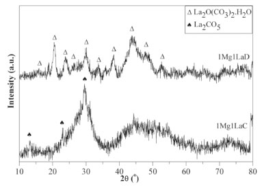 ![]() Figure 1. X-ray diffractograms of the samples 1Mg1LaD and 1Mg1LaC
