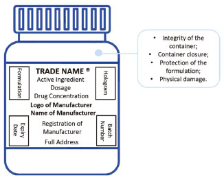 Module I: Visual inspection Students were asked to evaluate the label and recipient containing the given formulations of AASs to analyze the presence, absence or misspelled information such as active ingredient, trade name, name and address of the manufacturer as well as expiration and batch number (Figure 1). The recipient was also evaluated according to its suitability to contain the formulation.