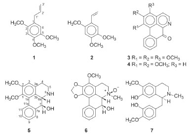 | Asarone-derived phenylpropanoids and isoquinoline-derived alkaloids from the bark of Duguetia pycnastera (Annonaceae) and their cytotoxicities |