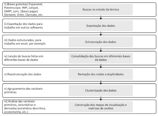 ![]() Figura 1. Fluxograma genérico de análise de patentes adaptado e baseado no trabalho de Abbas et al.14