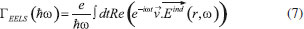 ESPECTROSCOPIA DE PERDA DE ENERGIA DE ELÉTRONS (EELS) APLICADA A NANOMATERIAIS PLASMÔNICOS Embora o mecanismo de interação entre os modos plasmônicos proposto na Figura 12A indique a existência de modos do tipo antiligante, a excitação por luz apenas nos permite observar modos ligantes. A pertinência de tal modelo de interação necessita de um método de excitação que permita observar tais modos antiligantes. Uma maneira de se fazer isso é através da excitação via elétrons acelerados, como aqueles em microscópios eletrônicos de alta resolução. Em sistemas como esse, é possível realizar espectroscopias em que a excitação é feita a partir da extração de energia do feixe de elétrons acelerados. A análise da energia perdida pelo feixe permite montar uma figura de probabilidade de perda de energia (ΓEELS) em função da energia perdida, que contém informações espectrais a respeito do sistema de estudo. Tal técnica é conhecida como EELS. Uma vez que a fonte de excitação é diferente, as regras de seleção no EELS não necessariamente seguem as mesmas regras observadas em espectroscopia por excitação óptica e, portanto, excitações que são proibidas em um tipo de espectroscopia podem ser permitidas na outra. Nos últimos anos vários estudos têm demonstrado a utilização de EELS como uma ferramenta extremamente versátil para a investigação de sistemas plasmônicos, uma vez que permite aliar em uma mesma investigação resoluções espectral e espacial, esta última graças a utilização do microscópio eletrônico.37,128-132 A Figura 13 apresenta resultados obtidos por Quillin et al.133 de simulação e experimentais de EELS para dímeros de AgNSs. Nestas simulações a probabilidade de um elétron com velocidade (v) perder energia ħΩ para o sistema, ou seja ΓEELS(ħΩ) , pode ser calculada através de:131