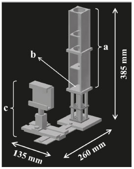 ![]() Figura 1. Design do dispositivo para medida de ângulo de contato projetado para a impressão 3D, obtido com o software Simplify 3D®