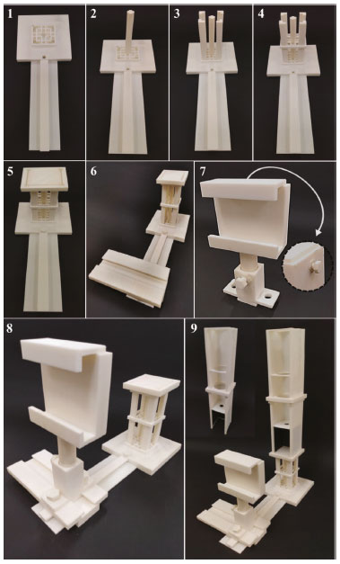 ![]() Figura 3. Passo-a-passo da montagem do dispositivo 3D para medição de ângulo de contato